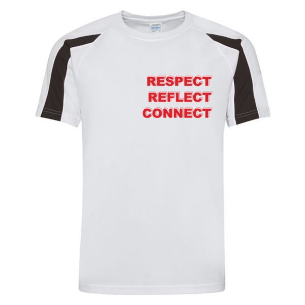 Kontrasteinsätze vorne und hinten an den Ärmeln, Rundhals, Raglan-Ärmel, Just Cool’s Neoteric TM-Material, feuchtigkeitsregulierend, Gleichfarbiges Nackenband, Gleichfarbiger Kragen, Nacken bedruckt